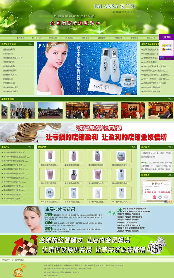 法蘭莎深植本土, 經過長期研究,特別針對東方女性膚質特 點,開發出不同系列的產品,能更好的起 到美白、保濕、抗皺等功效。
