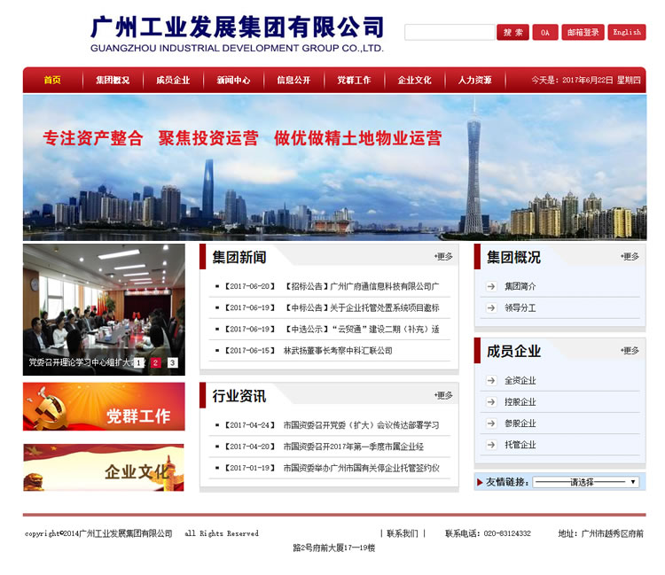 簡介:工業發展集團成立于1995年,是廣州市國資委直屬的國有獨資企業。集團公司作為廣州市國有企業資產重組、結構調整、盤活資源、理順關系的重要平臺,為推進市屬國有經濟布局、結構調整和深化國有企業改革服務。Official Webeite Addess
