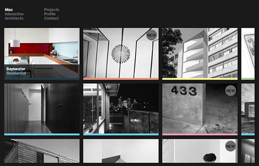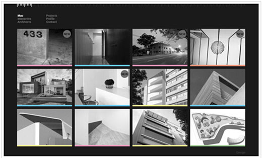 網站整體采用灰度系的顏色來設計,給予用戶一種神秘的感覺,但這種色系同時也容易帶給用戶深沉郁悶的情緒,并不適宜作為大范圍使用考慮的色彩格調,除非你能巧妙地使用,能夠讓用戶在瀏覽網站時感受到“撥開云霧,柳暗花明”的奇妙體驗。如下一個網站,把鼠標放在個圖片上,立馬顯示原有的豐富色感。