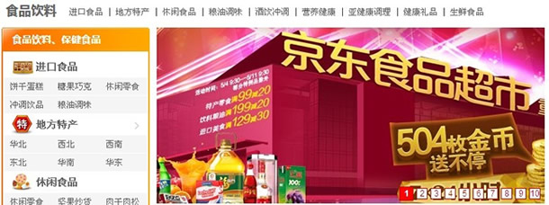 圖為京東商城食品頻道截圖