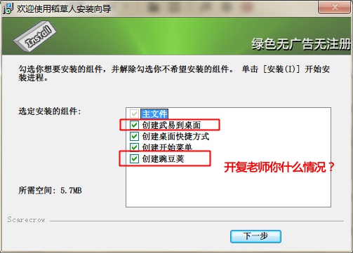 然后就是狗血的安裝之旅(最有趣的就是右上角那個(gè)「綠色無廣告無注冊」):